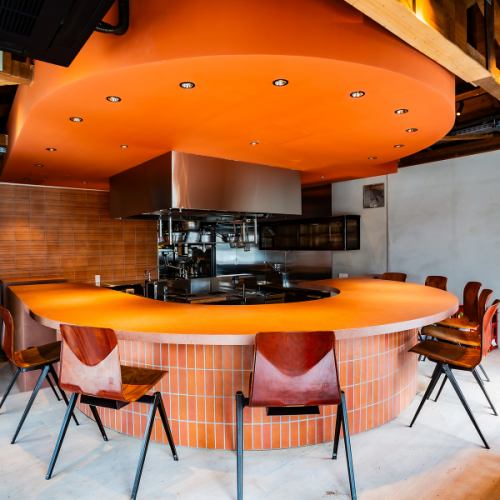 キッチンを囲う劇場型のカウンターで料理の仕上がりを目の前で見ることができます。デートや友人との集まり、どんなシーンでも使える雰囲気!ライブ感を楽しみながら特別なひとときを過ごせます。美味しい料理とともに、心温まる会話が弾む、素敵な時間をお楽しみください